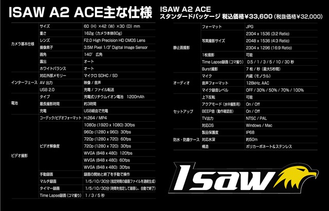 Isaw (アイソウ) 軽量コンパクトハイビジョンムービーカメラの取扱を開始しました! Isaw A2 ACE(アイソウ エーツゥー エース) スタンダードパッケージ(付属品一式セット) 税抜価格¥32,000 好評発売中!