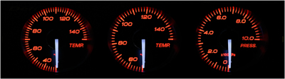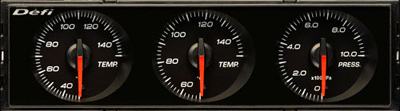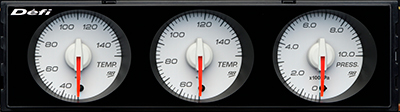 概要DIN-Gauge(ディンゲージ)は1DINサイズの3連メーターです。温度計2個、圧力計1個からなります。