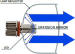 LEDコンバージョンバルブの特徴】 ●美しい配光を実現したディフュージョンミラー バルブ先端部にディフュージョンミラーを採用。これまでのLEDのように数を多くしたり発光面を多くとった眩しいだけの照射光と違い、高照度LEDの光をランプ内で増大し、リバースさせる事でランプリフレクターより理想的な光を照射します。また、発熱温度が低いためフォグランプ本体を傷めるような事は一切ありません。 ●インパルとベロフの共同開発による高精度な明るさと高品質 ●視認性に優れた車検対応の白色光を6500kで実現 ●日産純正フォグランプ装着車にボルトオンで取付可能(適合バルブタイプのみ)