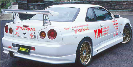 BNR34のノーマルウィングを利用し、更に高い位置へと変更することで効率的なダウンフォースを ※本製品取り付けには純正ボルト穴を使用します。