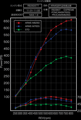| M7655は低中速域の扱いやすさを残しつつ、高回転域でRBらしい力強く伸びていく出力特性を得ることができます。また、M8260はポン付けタービンでありながら、まるでフルタービンのようなフィーリング、ピークパワーを発生します。 |